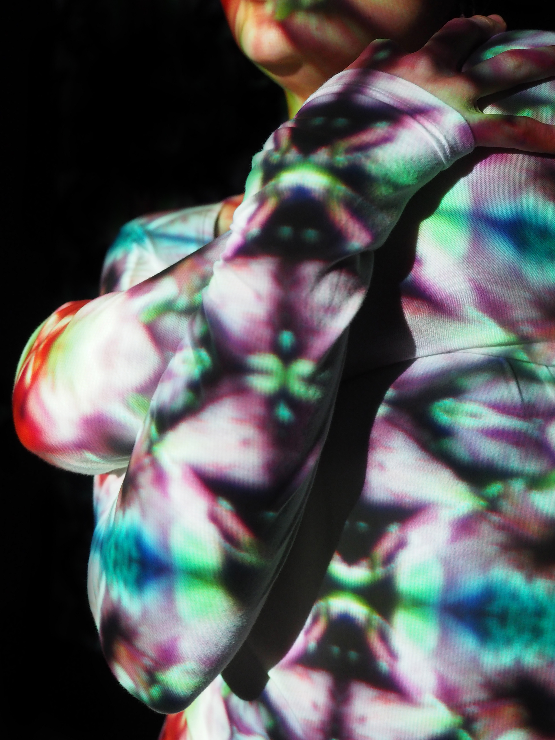 Wanting to experiement with projection, i projected my films onto a moving body to emphasise the movement and distrotion